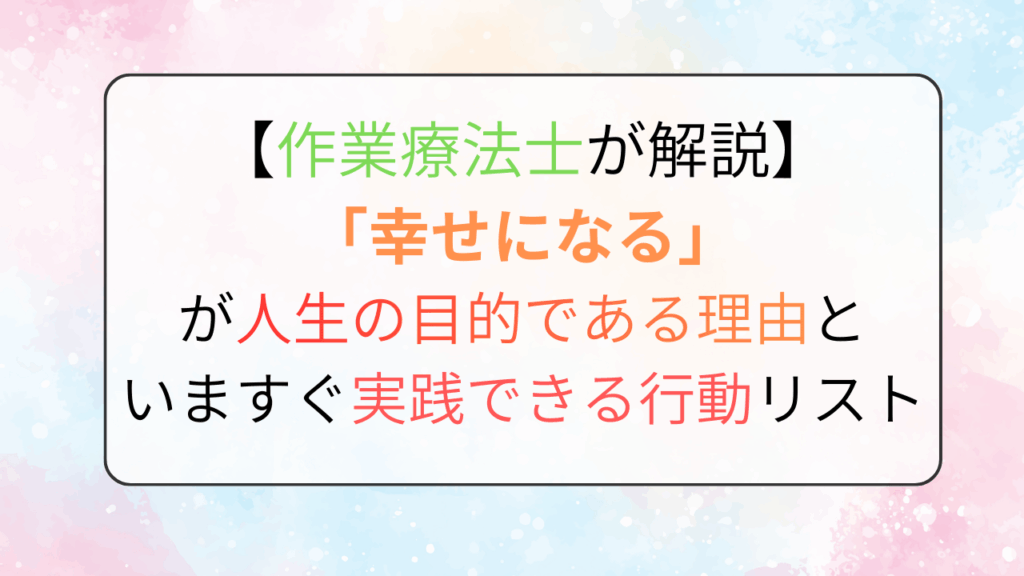 【作業療法士が解説】「幸せになる」が人生の目的である理由と、いますぐ実践できる行動リスト