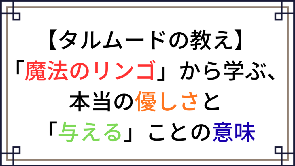 【タルムードの教え】「魔法のリンゴ」から学ぶ、本当の優しさと「与える」ことの意味