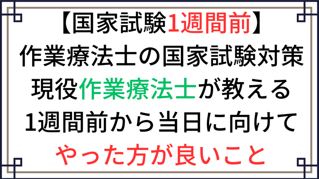 【国家試験1週間前】作業療法士の国家試験対策。現役作業療法士が教える1週間前から当日に向けてやった方が良いこと。