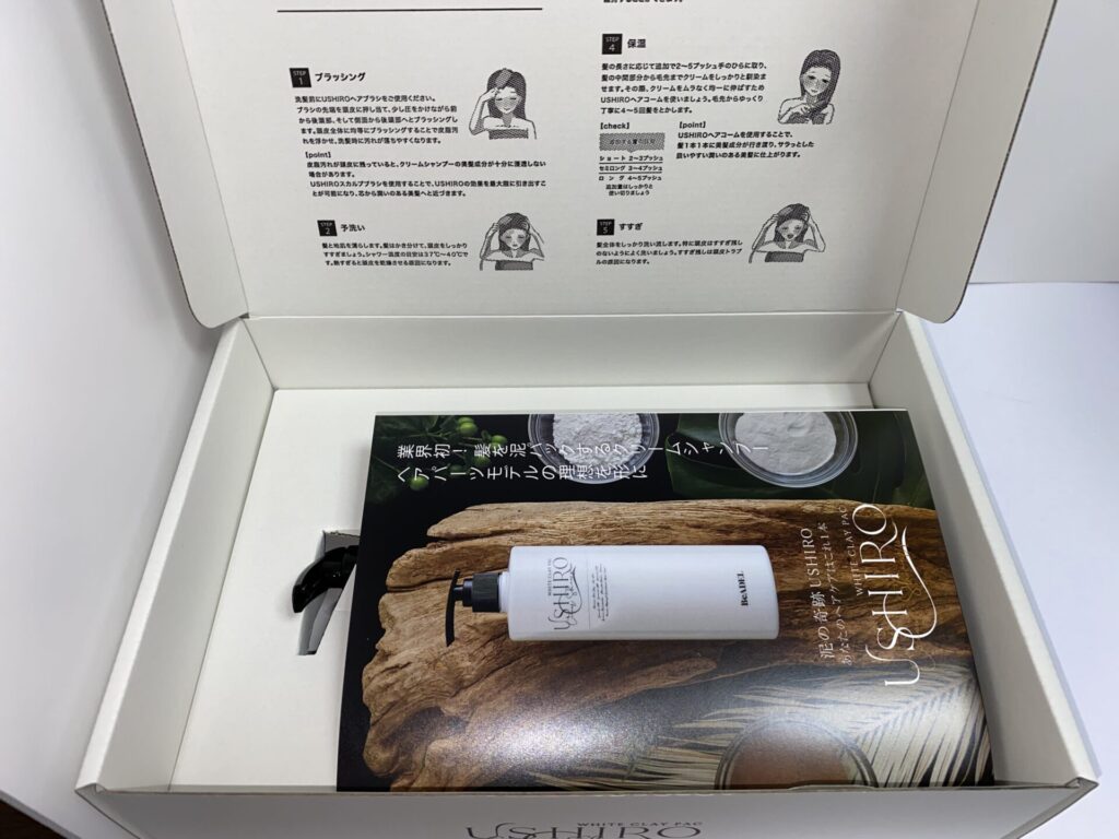 蓋を開けると、USHIROクリームシャンプーと使いかた、商品説明が入っています。