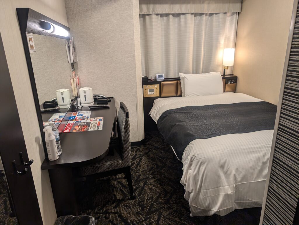 強いて気になった点を挙げるとすれば、やはり客室の広さでしょうか。大きなスーツケースを広げるには少し手狭に感じるかもしれません。ただ、それを補って余りある立地の良さと充実した設備があるので、個人的には十分に満足できました。また、エレベーターの待ち時間が少し長いと感じる時間帯もありました。