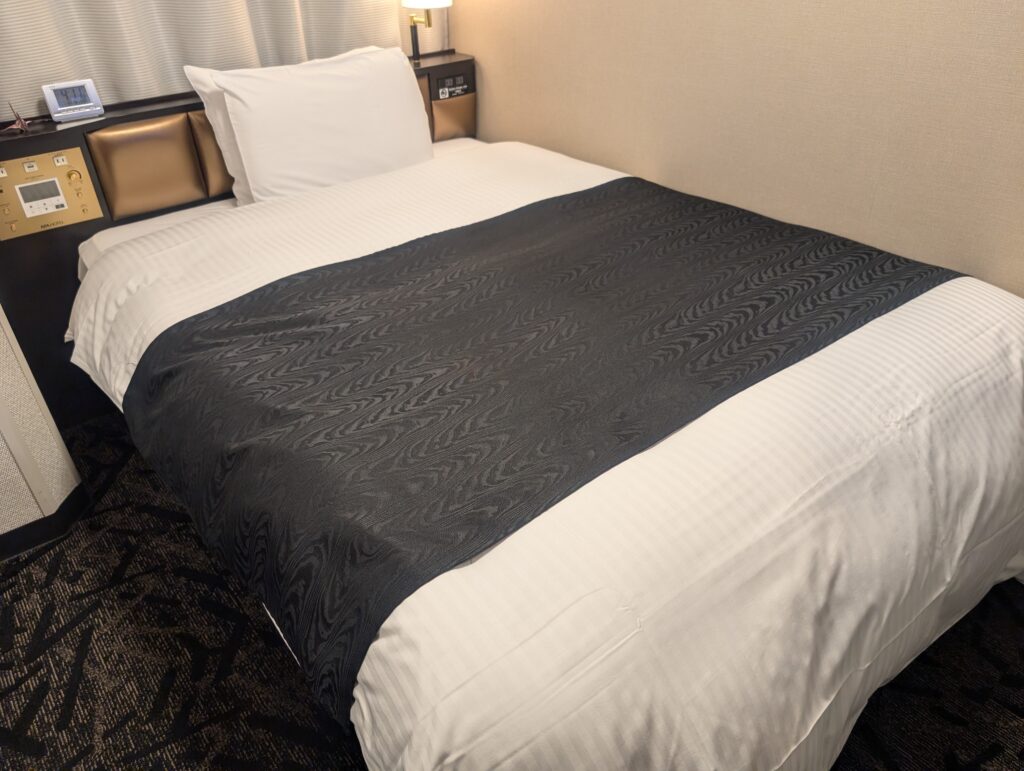 今回宿泊したのはスタンダードルーム。アパホテルならではのコンパクトな造りではありますが、ベッドの上で全ての操作が可能な集中コントローラーや大型テレビ、Wi-Fi環境など、必要な設備はしっかりと揃っています。新しいホテルだけあって、全体的に清潔感があり、快適に過ごせました。