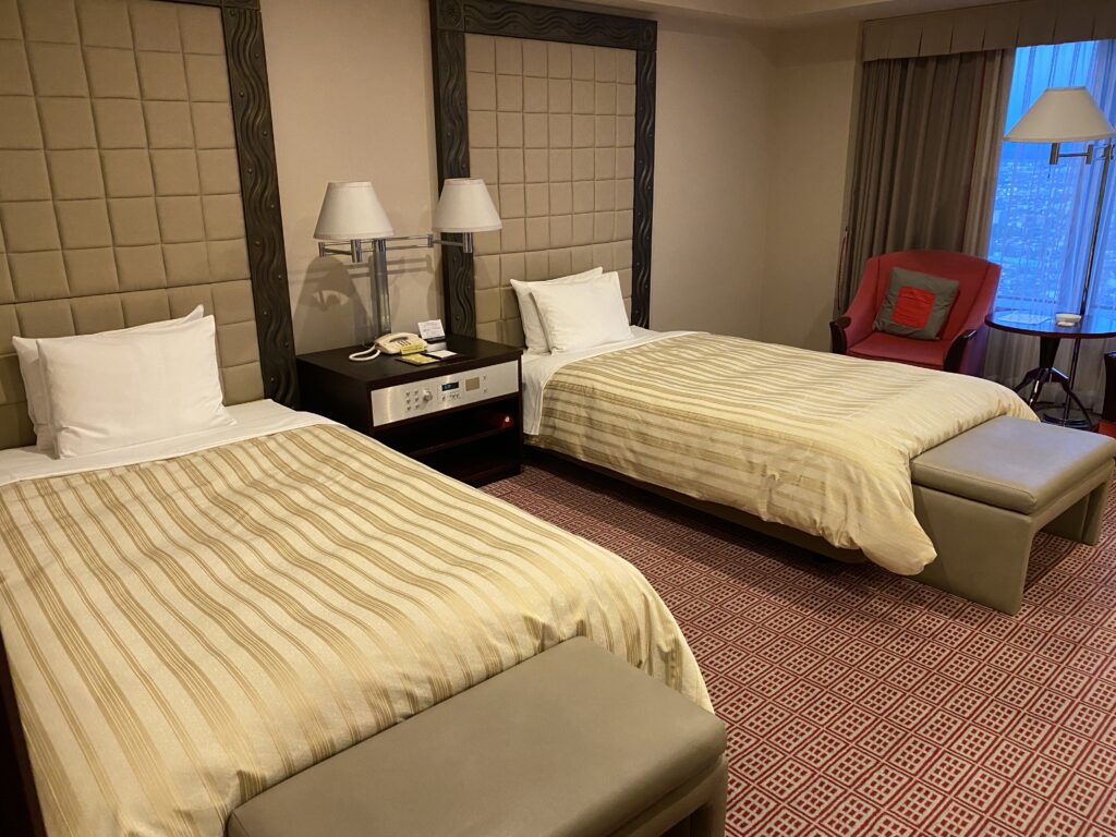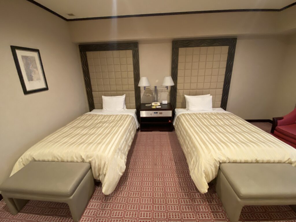 客室は清潔感があり、広さも十分。落ち着いた色調でまとめられており、ゆったりと寛ぐことができました。ベッドの寝心地も良く、旅の疲れを癒すのに最適です。