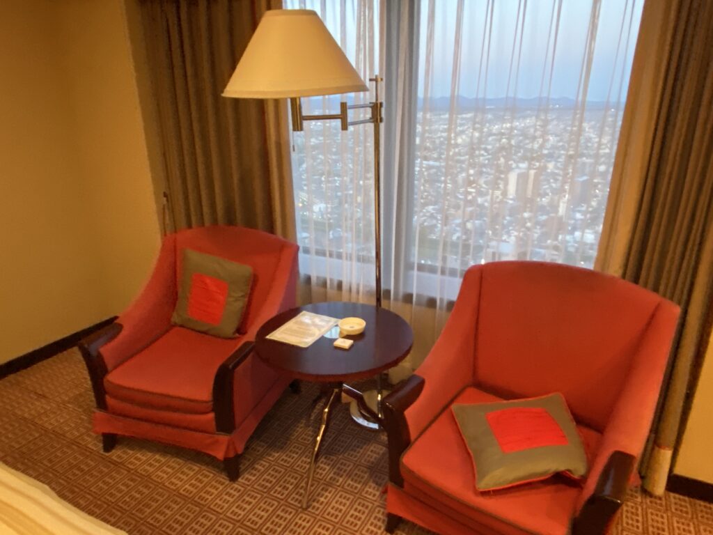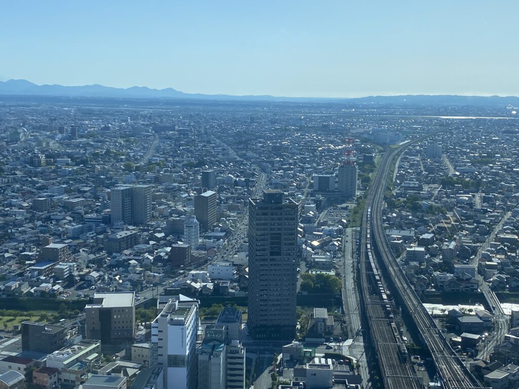 オークラアクトシティホテル浜松の客室は高層階にあります。窓の外には、浜松市街はもちろん、遠州灘まで見渡せるパノラマビューが広がっていました。
