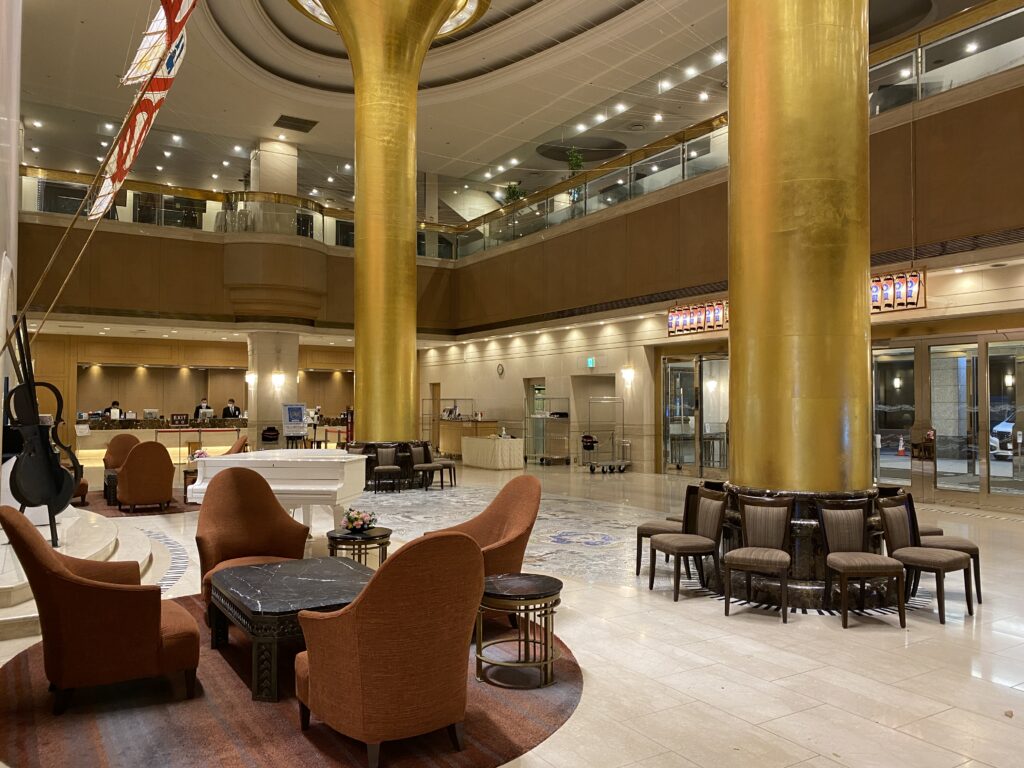 ロビーは広々としており、オークラならではの落ち着いた高級感が漂います。スタッフの方々の丁寧な対応も印象的でした。