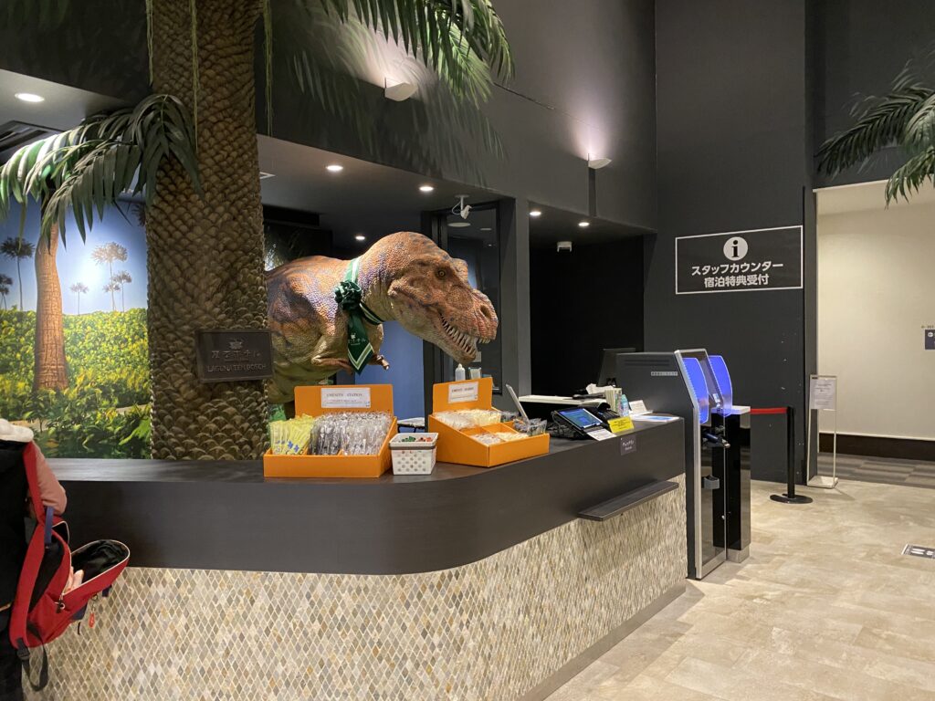 ホテルに到着してまず目に飛び込んできたのは、フロントで待ち構える巨大な恐竜ロボットたち!まるで映画の世界に迷い込んだような感覚です。彼らが日本語と英語でチェックイン手続きを案内してくれます。正直、最初はちょっと戸惑いましたが(笑)、タッチパネル操作は意外とスムーズ。あっという間にチェックイン完了!まさに「変なホテル」ならではのエンターテイメントですね。子供はもちろん、大人もテンションが上がること間違いなしです。
