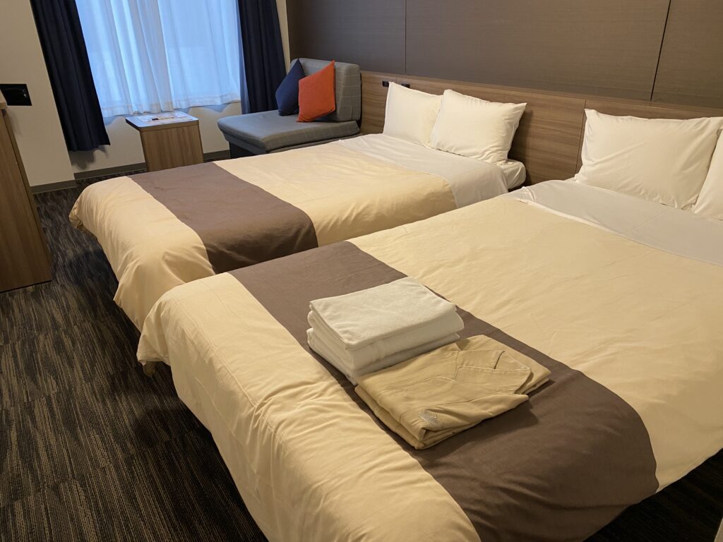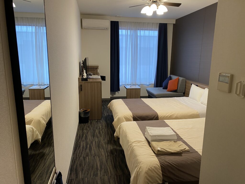 今回宿泊したのは、スタンダードなツインルーム。お部屋は清潔感のあるデザインで、必要なものはコンパクトにまとまっていて快適でした。