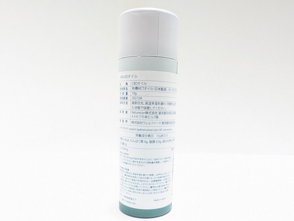 今回、ご縁をいただきネイチャーカンの40%CBDオイルを試す機会をいただいたのでご紹介をしたいと思います。