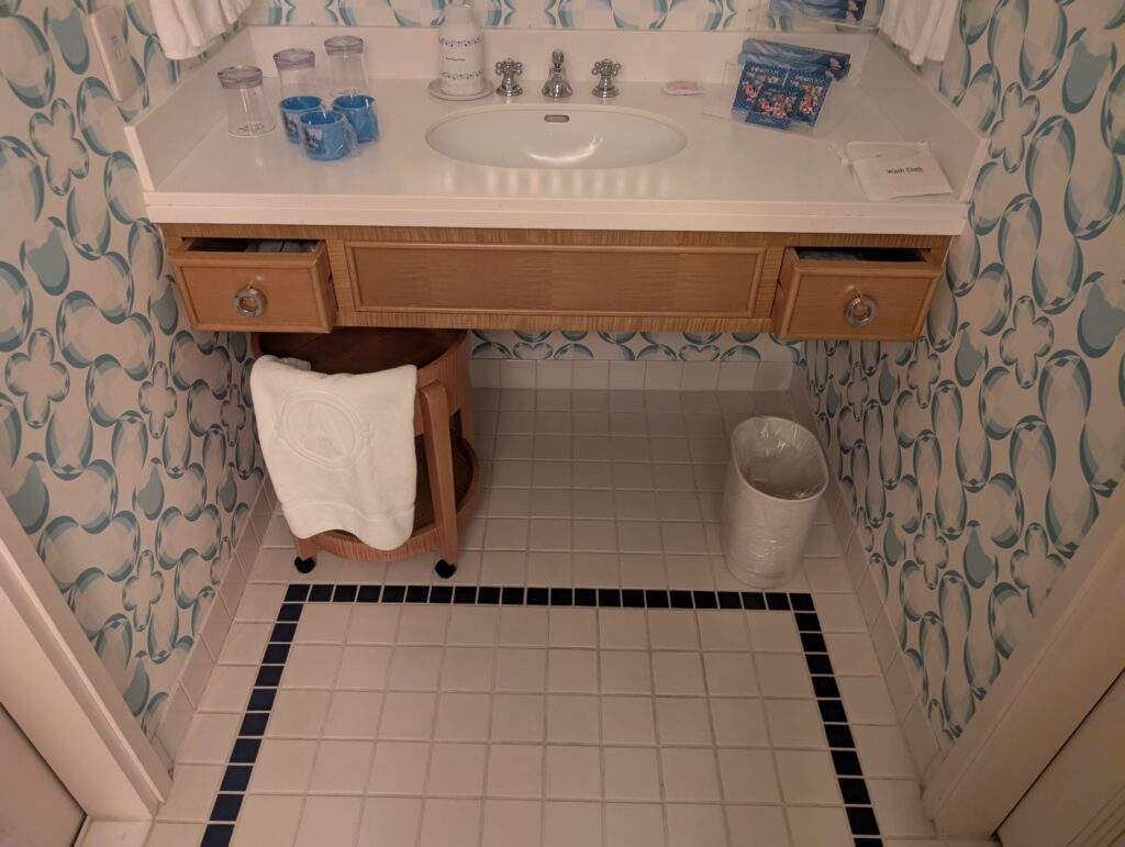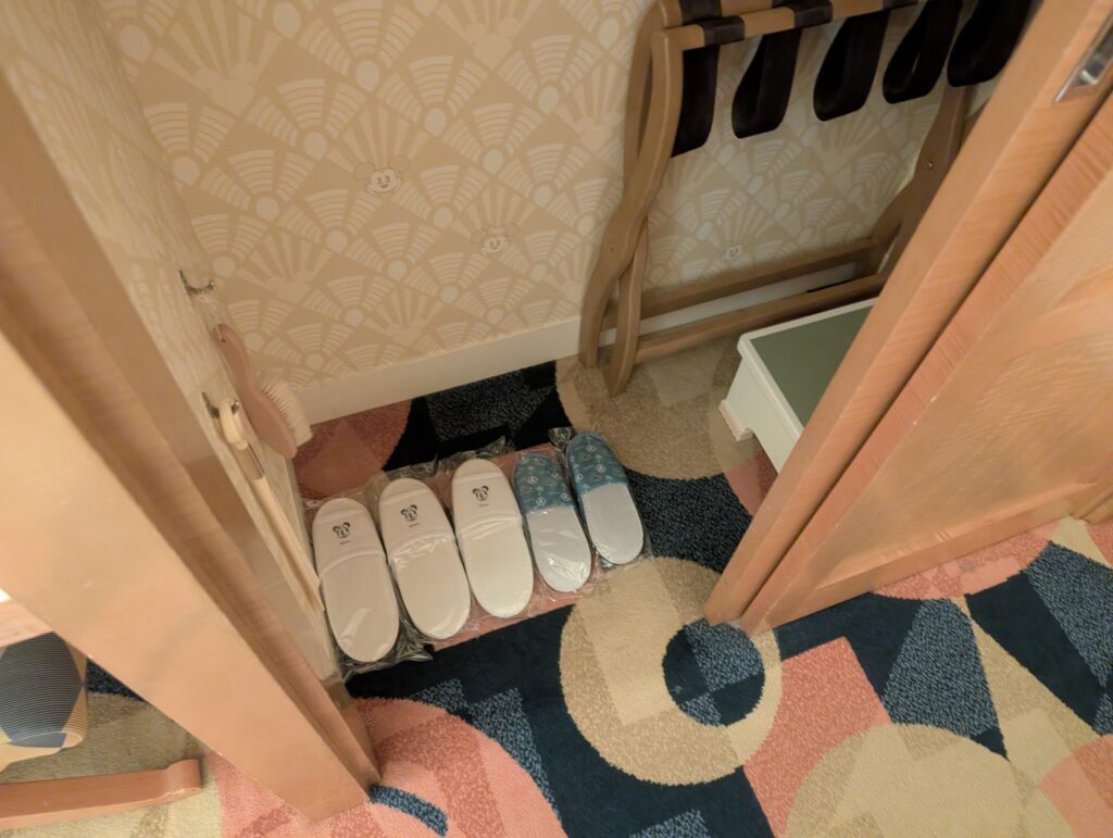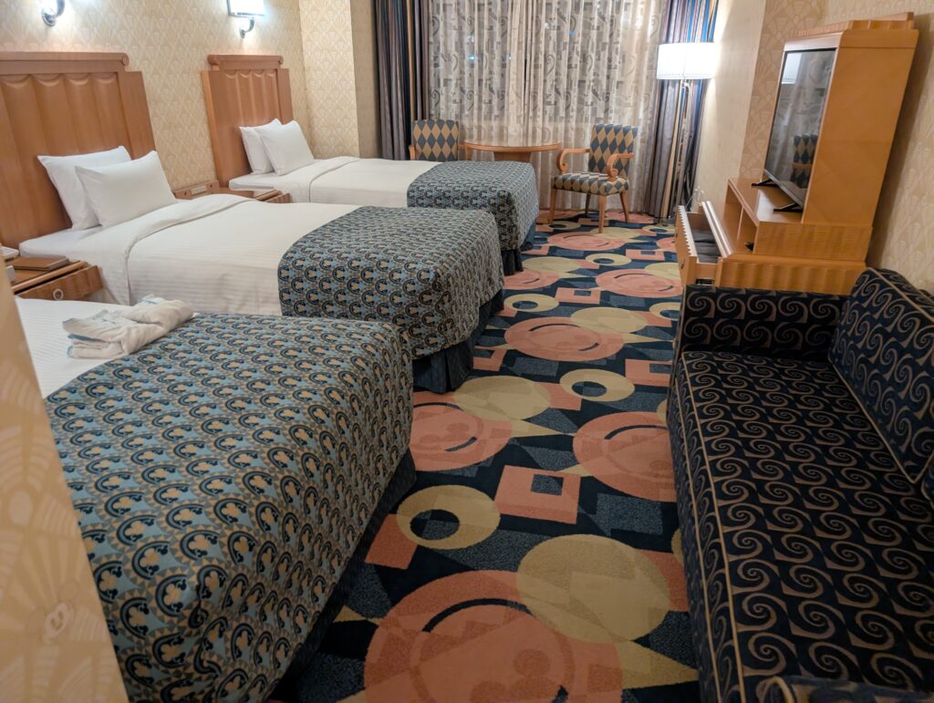 さりげないミッキーがデザインされた絨毯の上を通りお部屋に向かいます。